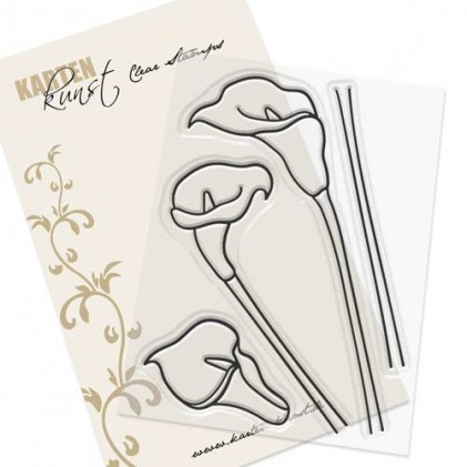 Karten-Kunst-Clearstamps Set Scribble CallasCalla-Blüten und passende Stengel, Höhe 8 cm, 10,5 cm und (zusammengesetzt) 12 cm