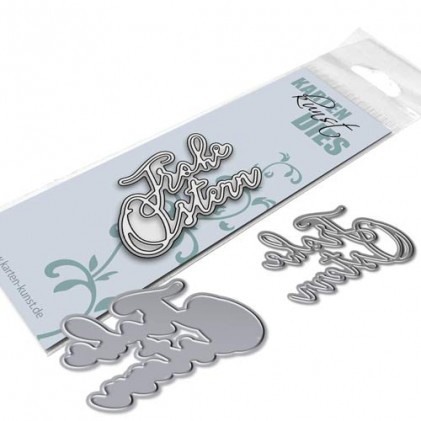 Text-Stanzschablone mit Umriss-Stanze "Frohe Ostern", elegante Schreibschrift mit passendem Schatten
